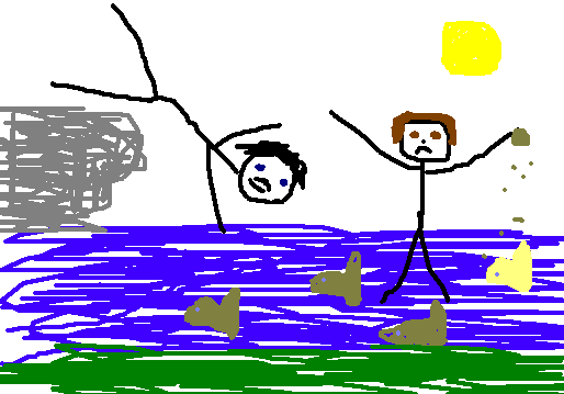 "I found fishees in the river and so I called Vin to come see, they was real big fish, big as this." "JD, the computer can't see you show how big the fish was, anyway it wasn't that big."
