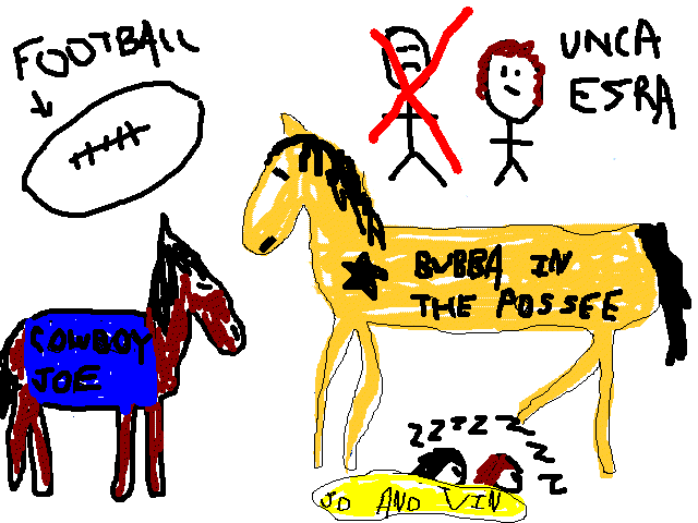 "Yeah!" JD shouted. "We're gonna root for the cowboys. Who you rooting for Unca Josiah?"