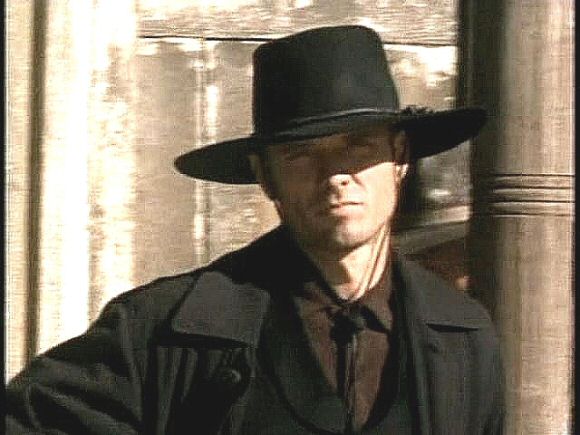 Outside the Mercantile Ezra was casually looking up and down the street, before getting his flask and taking a long swig. Then he looked in Chris' and Buck's direction, his face lighting up in a sardonic smile. He lifted his flask to Chris. Chris scowled at him, then eyed the flask with longing. Ezra's smile grew. He put the flask away with dramatically exaggerated movements, petted it once with another grin at Chris, and then he stepped off the porch to cross the street as careful as ever, going straight for the Restaurant.