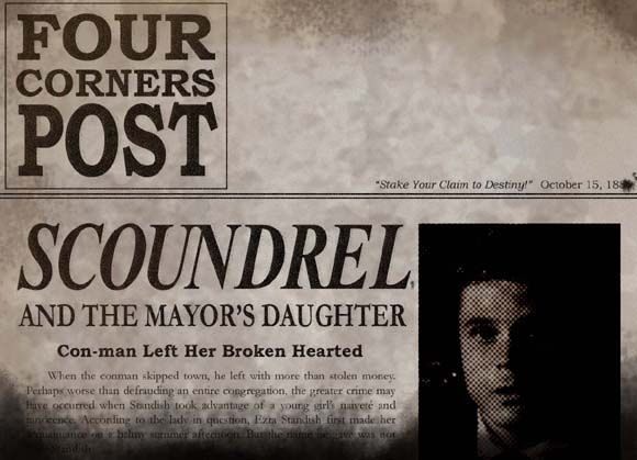 "Would - would you listen to this? 'The mayor's daughter, Annie, told the Post that Ezra Standish was a brute and a liar who forced his attentions on her.'" The gambler folded the paper shut in a furious rustle. "That woman pursued me like a terrier."