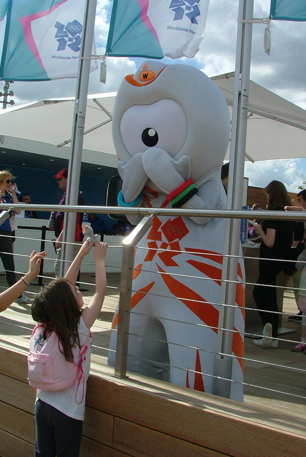 All their Olympic gifts, combined with the very visible build up on the media, at school and on the streets, was beginning to get the boys very excited. Very early on, the men considered delaying their departure so they could attend some Olympic events. It would mean finding somewhere else to live, since their lease was up a week before the start of the games. However when it proved impossible to get tickets for any event the boys would enjoy, they gave up on the idea. Nonetheless they were all enjoying the games build up excitement. The Olympic torch was traveling the length and breadth of the country, its progress reported every evening on the news programs. On the last Sunday of the half term, it would pass very close to their home. They considered just standing on the roadside as it passed by, but that seemed unfair to the boys. They’d have to wait a long time for at best, a fleeting glimpse of history. So they elected to take the boys to Ascot Racecourse, where the flame was due to be carried by a famous jockey on horseback. They would hopefully have a good view and see the flame for more than a few seconds, also there was the added bonus of a horse, always a plus with the boys. Ieuan and the Greens came too. It was after all, a once in lifetime opportunity for all of them. After parking the cars they walked into the racecourse. Close to the entrance was huge model of Wenlock, the Olympic mascot.