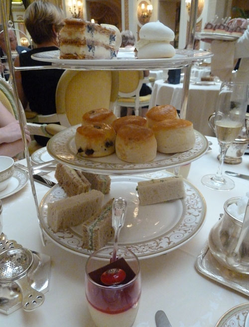 The adults chose two different teas, Earl Grey for Ezra, Rain and Josiah and English Breakfast Tea for the others. The boys were delighted with their hot chocolate. Then two beautiful three tier cake stands appeared on the table. On the bottom layer were a selection of finger sandwiches, scones on the middle layer, with jam and clotted cream supplied, and at the top, a selection of small cakes. In addition there was a trolley with large cakes from which the waiters offered slices. When they had eaten all the sandwiches more appeared. The same thing happened with the scones and small cakes. Tea and hot chocolate were also replaced.