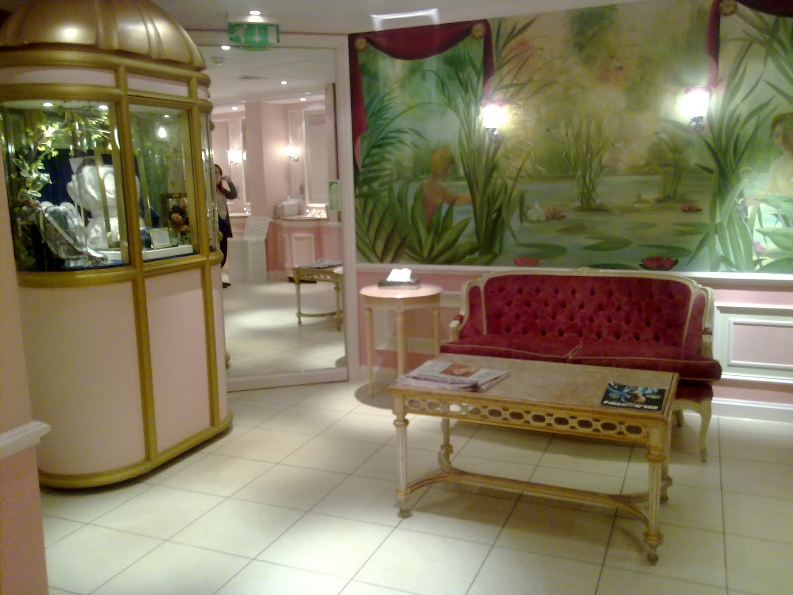 A trip to the bathroom was needed before they left. The toilets at the Ritz turned out to be every bit as sumptuous as the rest of the place, with an attendant and a satin covered sofa to sit on while you waited for your companion to finish. Chris was washing his hands as Ezra came down the stairs.