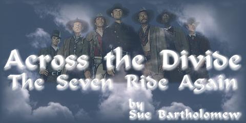 This segment should be read after: DISCLAIMER: The characters in this fic are owned by CBS, Trilogy and MGM. I'm just borrowing them to play with for a while. I promise to put them back when I'm through :) RATINGS: G WARNINGS: None, except for a good deal of corniness. Buck rode swiftly through the waving field of wildflowers, not even bothering to see if Chris and Vin were behind him; he knew they were back there somewhere, and would catch up. He was having far too good a time to rein himself in today. He slowed Beauty down to a leisurely trot and smiled as he took in his surroundings, the gently rolling hills, the majestic mountains beyond, and the cloudless sky which saturated the area with softly warm sunshine. He still couldn't get over how beautiful it was, even though he had been here for-well, he'd forgotten what time felt like so he really couldn't say. Sometimes it felt like an eternity, sometimes less than a minute. But it always felt right, and that was what mattered. And he was here to stay. He turned around, looking behind him for the others; they were riding slowly, as he was, enjoying the day, small dark specks against the colorful landscape. He reined in his horse and waited, willing to drink in the scenery while his friends caught up. He could hardly complain, now that they were almost all together again. Despite the lack of time, he mused to himself, it had sure seemed like ages until the others had arrived. Well, Ezra had been there first, of course, but he had confided to Buck that he felt the same way-having known what was in store, he had also been somewhat impatient for the others to arrive so they could share it as well. Any sadness over the loss of their former lives had been eased by the joy of their new ones, and Buck had waited and watched with increasing excitement as their small, blood-stained group, who had gone through such hell before, were again reunited. As Buck watched Chris and Vin ride up, he smiled a little, remembering how hard it had been to wait for Chris. He had wanted so badly to be the first one there for Chris, had wanted to see the joy of his longtime friend's reunion with his family. It had been terrible to know that Chris would be cut down, even if it meant his suffering was over, and he and Ezra could only be beside him in those final moments and offer what comfort they could without being able to interfere. It had been an awful, bloody way to go, but knowing what lay beyond it had helped quite a bit. And Buck had been all set to go to Chris until he realized that Sarah and Adam deserved that honor far more than he did; so, he had waited a little longer. But it had been worth it, to see that old smile again. For the others, the wait had been almost as excruciating, but no less satisfying. Vin had been next; the long vigils Chris had spent by his bedside as the tracker lay dying from his injuries sustained at Purgatorio were particularly hard, but at least he had had Vin's mother there to share the burden of watching his friend die. The whole story-how Vin had finally been shot off of the burning rooftops of Purgatorio, how a passing group of Seminole had found him in the ashes and taken him into their tent, where he had died without regaining consciousness - had gained Vin an entirely new respect in Buck's eyes. He had certainly earned the undisguised joy which now shone in his blue eyes as he rode through the unsurpassable beauty of this new world. It had been with a great deal of satisfaction that Buck had watched Nathan and Josiah each reach a ripe old age and, in Nathan's case, find joy in a family of his own by marrying Rain. Their lives had been spent serving others and keeping the memory of their time together alive, and Buck and the others had made it a point to be near in times of grief as well as joy. They had lived the full lives the other men could not, and had not wasted a single minute to regrets or sorrow; they had earned the right to be here as well, and could now watch with satisfaction as the results of their labors continued the positive course they had been set on. Then, of course, there was JD. Buck sighed, surprised at how sad he felt whenever he thought of the kid; but after all these years, he reminded himself, JD was hardly a kid anymore. He's an old man, he thought with wonder, older even than Nettie Wells now. It had pained Buck to know that JD, who out of all of them had enjoyed being together in the West the most, was now the only one left. JD had longed to die in a blaze of glory, and almost had; for a few dark days Buck and Chris and Ezra had stood by watching as Nathan and Josiah fought to keep JD from joining Chris, and the kid had been hurt so badly that Buck almost hoped he would die, just to end his suffering. But it wasn't to be, and Buck knew why; after all, he had met JD's son William. Watching JD's life unfold had been of special interest to all of them, but to Buck especially. He had to feel a little pride as he watched the kid regain his strength and become a strong, handsome young man-a man now, not a kid any more. He wondered if JD had felt them near at all during the times when his life was in danger-and there had sure been enough of those, the kid would have to become a lawman in Chicago of all things. Evil had stayed the same, it seemed, but the methods had gotten more sophisticated. But JD had been up to the challenge, and Buck believed that if he hadn't been dead already, he would have busted with pride. But Buck had to admit it hurt to see JD get older. The light in his eyes had never dimmed, and he never lost his youthful excitement for life that nearly got him killed a million times. But Buck had never expected he'd see the day when JD's thick hair would be white, the nimble hands covered with wrinkles, the excited gait hampered by disease and age and old wounds. There would be no more running up the street, brandishing his gun at danger, his heart pounding with terrified joy. And last 